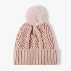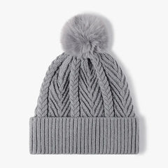 Cable Knit Solid Color Hat with Pompom