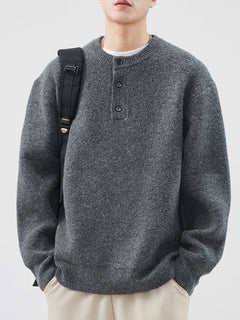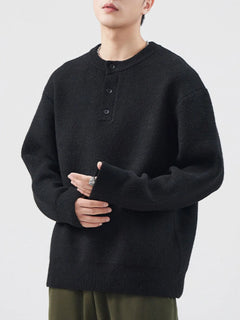 Men's Plus Size Button Detail Ribbed Hem Sweater